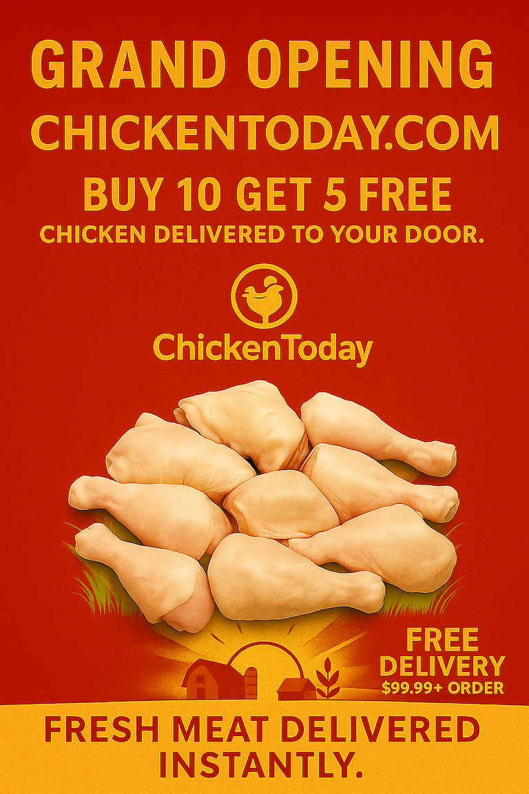 🏡 ChickenToday™ — Fresh Halal Chicken, Delivered Same Day.🚚 Order Before 5pm.No freezer. No chemicals. No drama. Just same-day fresh halal chicken — raised right, processed clean, and delivered with love. Whether it's for your mom's karahi, daadi's yakhni, or your protein-packed meal prep — this is the chicken your family deserves.🟢 Hand-Slaughtered ✅ 🟢 Delivered Fresh Daily ✅ Order now we'll fly to your door. *(Yes, literally. Ask the chicken.)* 🐔💨